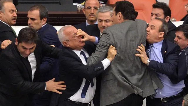 Die Debatte um das Gesetzespaket hatte am Dienstag begonnen. Die Situation eskalierte bereits zum zweiten Mal innerhalb 48 Stunden: Abgeordnete der islamisch-konservativen Regierungspartei AKP und der Opposition gingen schon einmal während den Beratungen mit Fäusten aufeinander los. Bereits in der Nacht zum Mittwoch war es im Parlament zur ersten Balgerei gekommen, bei der Parlamentarier unter anderem mit Stühlen und Wassergläsern um sich warfen. Fünf Abgeordnete waren verletzt worden.