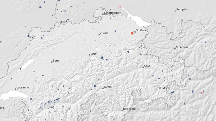 • Damit war das Beben in den Regionen Herisau und St. Gallen leicht bis deutlich spürbar, da das Epizentrum gemäss SED in der Nähe dicht besiedelter Gebiete liegt.