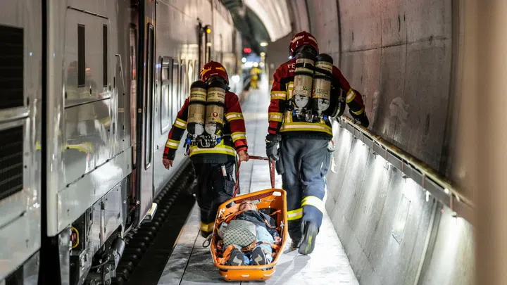 Ein Feuer im Zug bricht aus, wegen eines technischen Defekts an einer Batterie. Der Zug mit 800 Passagieren an Bord muss mitten im Tunnel einen Notstopp einlegen. Dutzende Fahrgäste werden verletzt. So lautet das Szenario einer gross angelegten Übung im neuen Bözbergtunnel zwischen Frick AG und Brugg AG.