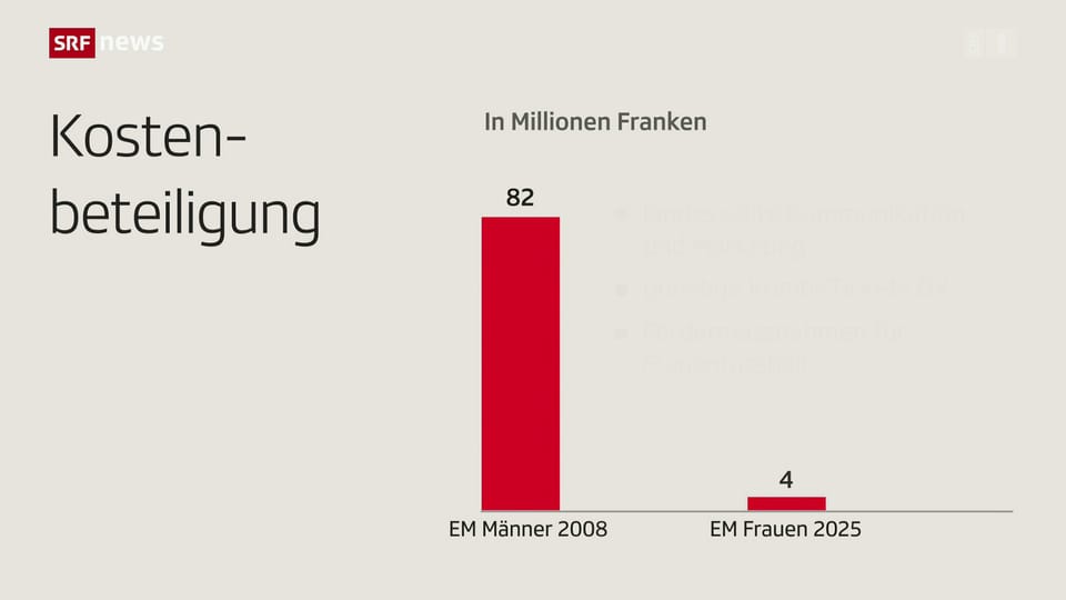 Schaut man genauer hin, stellt man fest: Diese vier Millionen müssen gleichzeitig anderswo im «Bundesamt für Sport» eingespart werden. Sprich: Der Bundesrat will für die Frauen-EM kein zusätzliches Geld ausgeben. Der Bund hat damit die gesamten Gelder für die Vergünstigung der geplanten Kombi-Tickets im ÖV sowie für die Landeskommunikation und das Standortmarketing gestrichen.