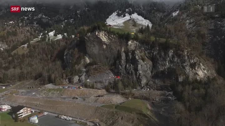 Bild 4 von 10. Die Felswand, in der sich das Munitionsdepot befindet, stürzt ein, wobei sich etwa 250'000 Kubikmeter Gestein lösen. Bildquelle: VBS.