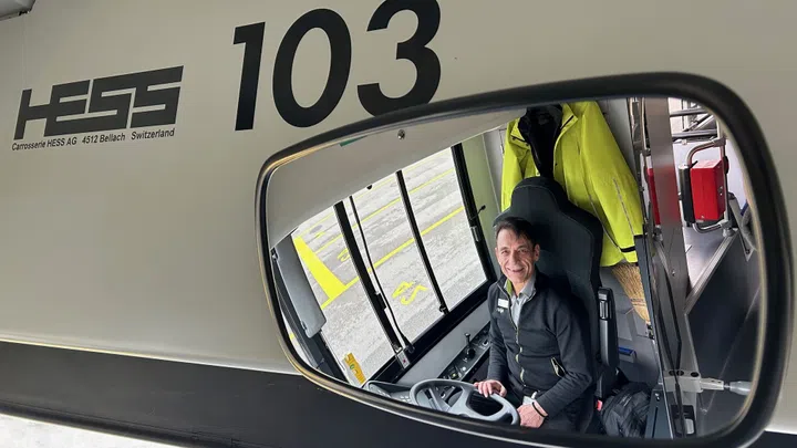 Bild 1 von 4. Für Chauffeur Zoran Zlatkov ist der Trolleybus kein Fahrzeug, sondern Leidenschaft. Bildquelle: SRF/Roger Steinemann.