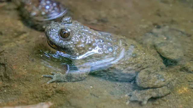 «Bei militärischen Übungen entstehen immer wieder Vertiefungen, zum Beispiel durch Fahrzeuge. Diese füllen sich dann mit frischem Wasser. Und dort macht es sich die Gelbbauchunke bequem. Sie bevorzugt relativ frisches Wasser».