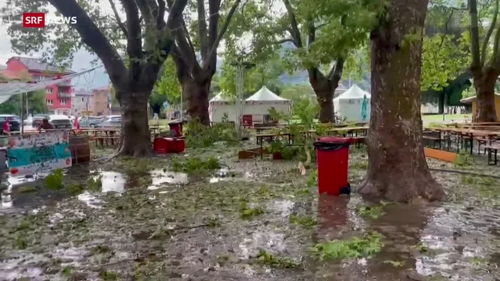 Hinzu kommt, dass lokal auch Hagel möglich ist. Auf der Alpensüdseite ist auch mit grösseren Hagelkörnern zu rechnen. Die starken Gewitter bringen stürmische Böen mit sich. So können auch Bäume umfallen, vor allem jetzt im Sommer, wenn sie viel Laub tragen. Am Morgen sind im Tessin bereits Bäume umgefallen und Strassen mussten deshalb gesperrt werden.