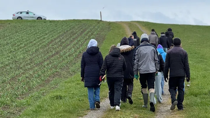 10 Uhr morgens, der Wind pfeift übers Feld. Die Jugendlichen stehen zwischen den Knoblauchreihen. Einige gut ausgerüstet, andere mit durchnässten Turnschuhen und alle konzentriert bei der Sache.