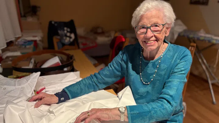 Weisse Haare, blaue Augen, flinke Hände. Die 86-jährige Rösy Sidler sitzt hinter der Nähmaschine, in den Händen weisser Stoff. Daraus näht sie die Hemden fürs Klausjagen.