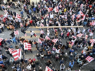 Bild 7 von 16. Pro-Berner markierten am Nachmittag ihre Sympathien. Bildquelle: Matthias von Wartburg/SRF.