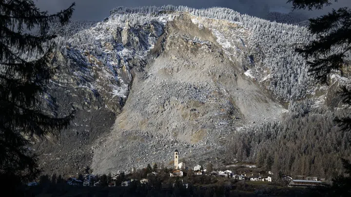 Im Verlaufe des Novembers hatte sich das «Plateau Ost» hoch über dem Dorf immer stärker beschleunigt. Dieses ging vergangene Woche in einem mehrtägigen Abbruchereignis ab. Aus der instabil gewordenen Felsmasse gingen laut der Gemeinde über 100 Felsstürze auf die darunterliegende Schutthalde nieder.