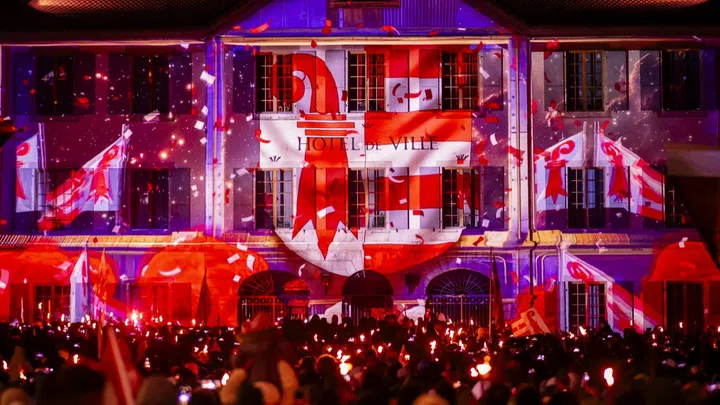 Bild 2 von 5. Zuvor feierten tausende Menschen den historischen Moment an einem Fackelumzug durch Moutiers. Bildquelle: SRF/Matthias Thomi.