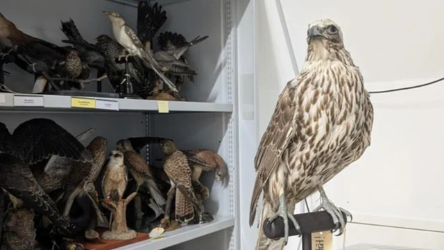 Hinter einer Schiebetür steht das wohl älteste Präparat des Naturama: ein Gerfalke. «Er war Teil der Sammlung von Friedrich Frey-Hérosé. Also jenem Aargauer, der 1848 Teil des ersten Schweizer Bundesrats war. Dieser Falke wurde 1798 erlegt. Das ist wirklich sehr, sehr alt», schwärmt Wegmann.