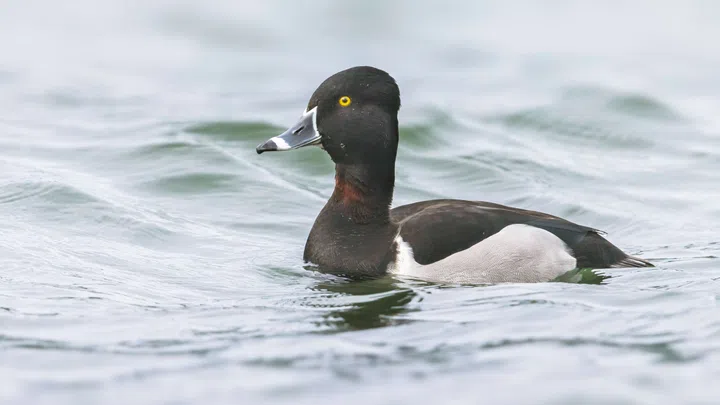 Der markante weisse Ring am schwarzen Schnabel – die Ringschnabelente hat ihren Namen nicht von irgendwo. Und als sie in einem kurzen Moment den Kopf hebt, gelingt das perfekte Foto. Wie findet man unter Hunderten Enten die eine richtige? Louis sagt: «Glück.»