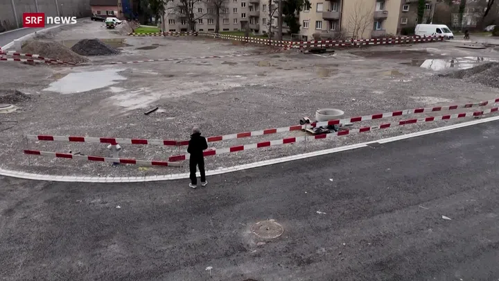 Bild 1 von 2. Das Grundstück war lange ein leer stehender Bauplatz, dennoch kam es zu langen und teuren Verzögerungen. Bildquelle: SRF.