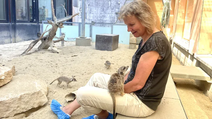 Kaum sitzt Marta Manser im Gehege, klettert ein Erdmännchen zuerst auf ihren Schoss, dann auf ihre Schulter. Dort gibt es die beste Aussicht! Erdmännchen sind an Menschen gewöhnt. Was die Tiere aber wirklich brauchen, ist ihre Gruppe. «Es ist das Schlimmste, was einem Erdmännchen passieren kann: Die Gruppe zu verlieren.»