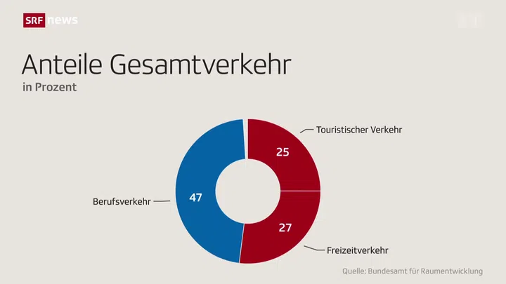 Das wollte FDP-Ständerat Josef Dittli ändern und forderte den Bundesrat vor drei Jahren auf, diesen touristischen Verkehr zu erfassen. Der Bundesrat trat auf das Anliegen ein und hat dazu einen Bericht des Bundesamtes für Raumentwicklung (ARE) verabschiedet. Das Papier zeigt: 25 Prozent des Gesamtverkehrs in der Schweiz wird verursacht durch touristische Aktivitäten.