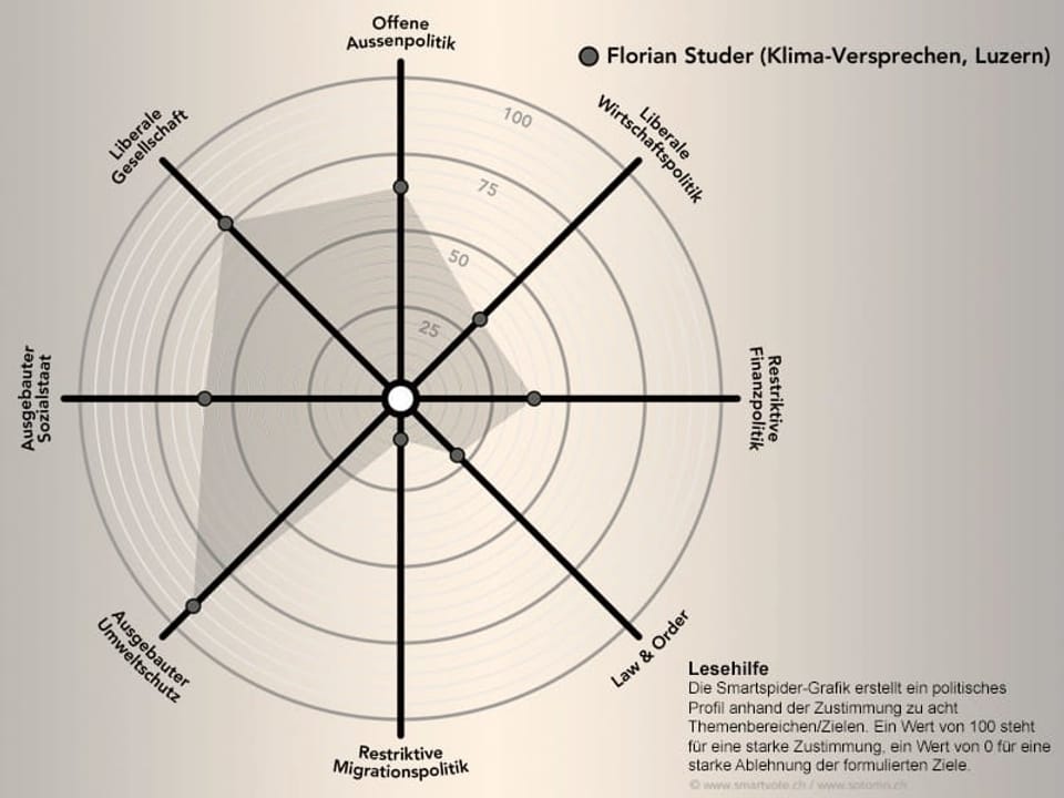 Bild 14 von 14. Das politische Profil von Florian Studer. Bildquelle: Smartvote.
