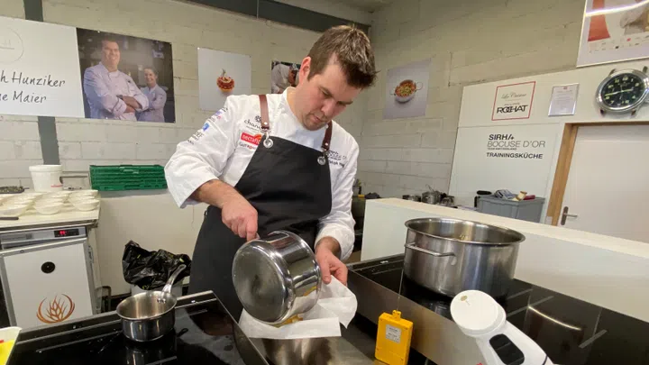 Seit Ende November steht der 39-Jährige mehrmals pro Woche in einer Trainingsküche in Schüpfen BE. Einer eigens nachgebauten Küche, die bis ins letzte Detail der Wettbewerbsküche in Lyon entspricht. «Jeder Handgriff muss sitzen, kein Schritt darf zu viel sein, alles muss blind funktionieren», so Hunziker.