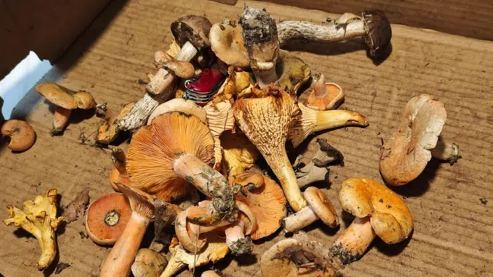 Hier ist Seleno Campagna fast jedes Wochenende im Einsatz, um Pilze zu kontrollieren. Gerade kommt ein junger Mann mit einem Korb voller Pilze vorbei. Der Kontrolleur breitet die Fundstücke auf seinem Kontrolltisch aus und mustert jeden einzelnen Pilz akribisch.