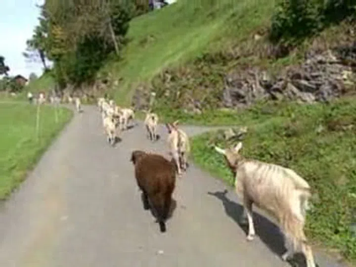 Schweiz aktuell vom 04.10.2004: Die Schwyzer Bauernfamilie Abegg trieb heute ihre 40 Geissen und ein Schaf von der Alp zuhinterst im Muotatal nach Hause. Es ist ein langer Alpabzug: 35 Kilometer weit müssen die Tiere laufen, bis sie wieder im Tal sind. Stefan Eiholzer war mit ihnen unterwegs.
