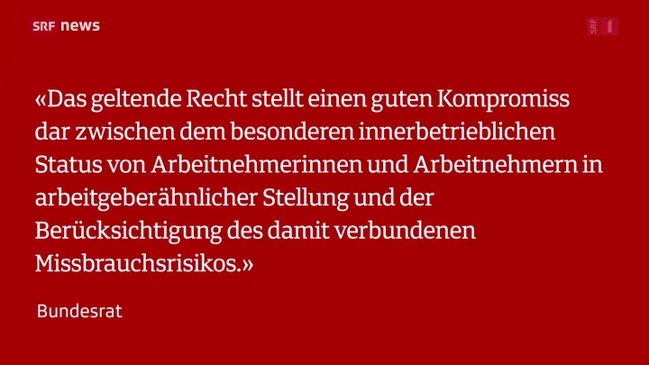 Bundesrat, Kantone und Expertin Filippo sind gegen die Vorlage, weil der erleichterte Zugang etwa das Missbrauchspotenzial beim Bezug von Leistungen der ALV erhöhen könnte, wie sie sagen. Die geltende Regelung stelle «einen guten Kompromiss dar zwischen dem besonderen innerbetrieblichen Status von Arbeitnehmerinnen und Arbeitnehmern in arbeitgeberähnlicher Stellung und der Berücksichtigung des damit verbundenen Missbrauchsrisikos», schreibt der Bundesrat. Die Neuregelung würde zudem einen erheblichen bürokratischen Aufwand für die Kontrolle der ALV-Gesuche bedeuten, um Missbräuche zu verhindern. Ein weiterer Einwand: Unternehmer könnten wegen der neuen Versicherung dazu verleitet werden, höhere Risiken einzugehen, sagt etwa die Expertin.