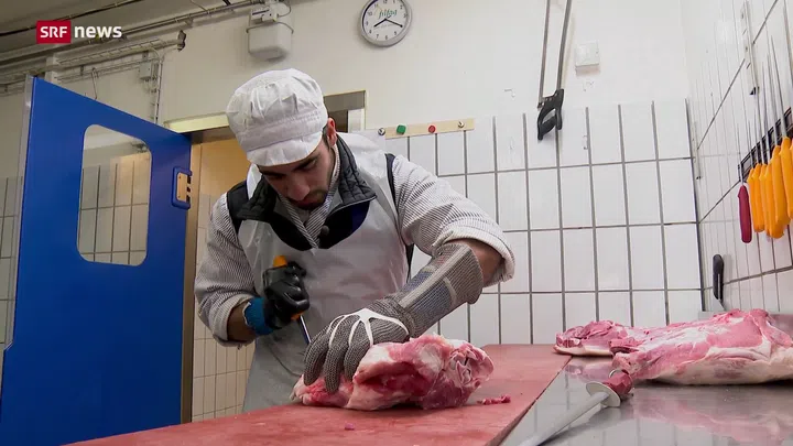 Bild 1 von 5. 195 Lehrstellen bei Schweizer Metzgereien waren per Ende März unbesetzt. Bildquelle: Keystone / Laurent Gillieron.