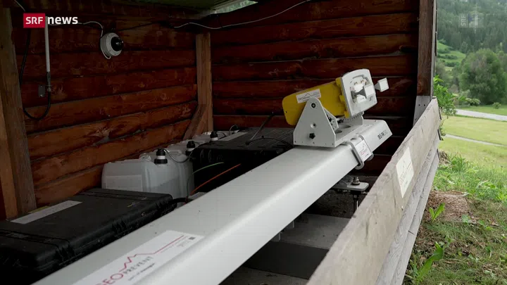 Bild 2 von 3. So sind präzise Messungen auf einen Millimeter genau möglich, sagt Johannes Gassner von Geopraevent. Bildquelle: SRF.