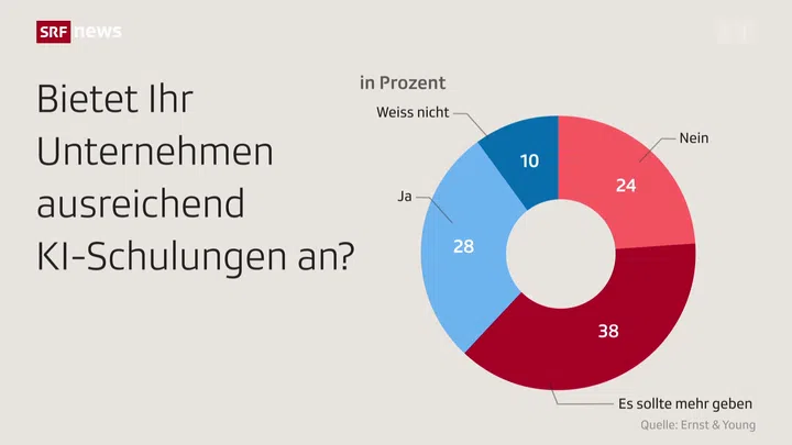 Bieten Schweizer Unternehmen genügend KI-Schulungen an? Bei unternehmensinternen Angeboten scheint es noch zu hapern. Fast zwei Drittel der von Ernst & Young befragten Angestellten glauben, dass ihr Unternehmen nicht genügend Schulungen anbietet.