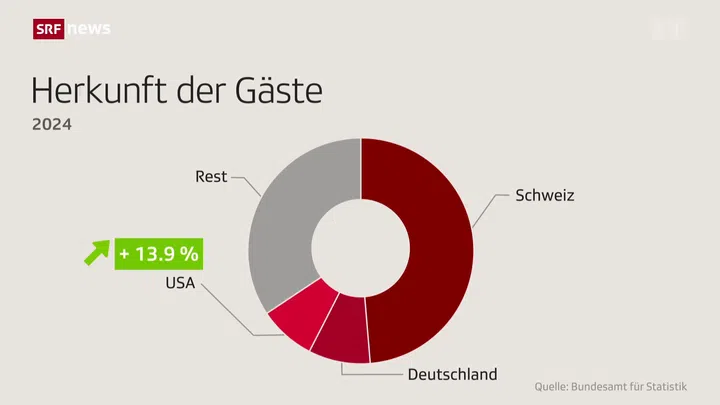 Das grösste absolute Plus aller Herkunftsländer steuerten die USA bei. Mehr als drei Viertel der zusätzlichen Logiernächte gingen auf das Konto von Amerikanerinnen und Amerikanern. Diese spielten auch im Winter eine zunehmend bedeutendere Rolle.