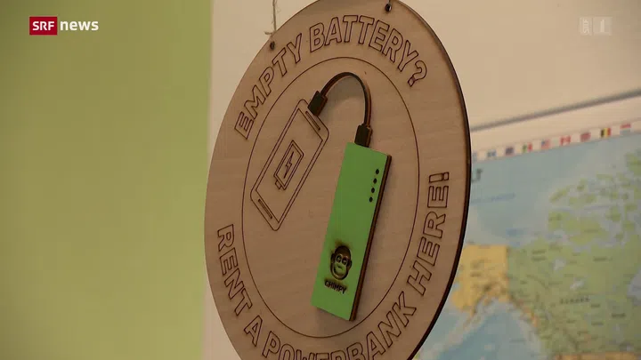 Wenn der Akku schlapp macht, kommt «Chimpy» zum Zug. Das Zürcher Unternehmen vermietet an Kiosken, Automaten und Co. sogenannte Powerbanks zum Laden von Smartphones, Laptops und anderen stromhungrigen Geräten.