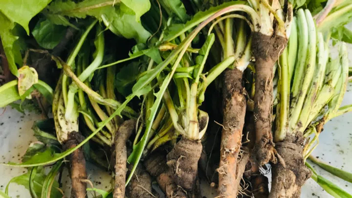 - Die gesäuberten, in feine Blättchen geschnittenen Löwenzahnwurzeln hinzufügen und 2-3 Minuten darin kochen.