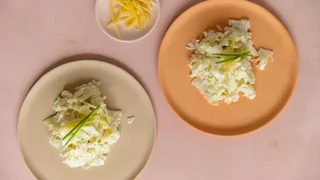 Ein knackiger Randen-Rüebli-Salat an einem fruchtigen Dressing mit gerösteten Cashews, Dill und Meerrettich-Joghurt.