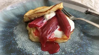 Diese Ricotta-Pancakes mit süss-saurem Rhabarber schmecken herrlich und stehen im Handumdrehen auf dem Tisch.
