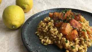 Dieses Gerstotto mit japanischem Touch vereint Umami-Geschmack mit der aromatischen Yuzu.