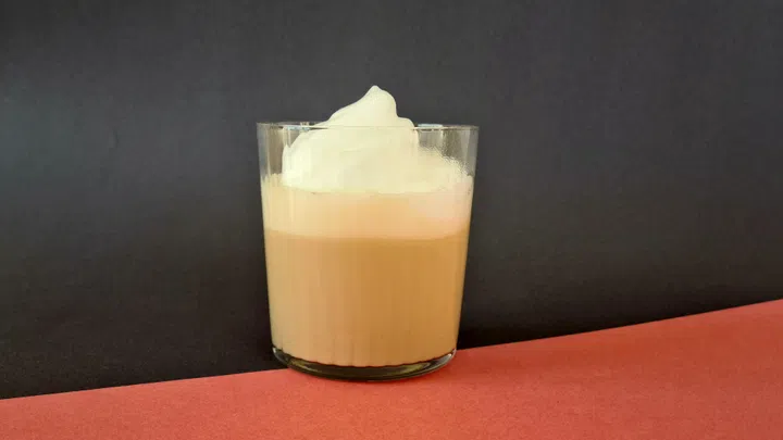 - Tee durch ein Teesieb ins Glas giessen. Vanillesirup beigeben und gut umrühren.