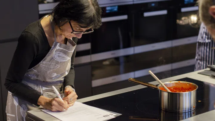 Tipp: Um Tränen beim Zwiebeln schneiden zu vermeiden, können Sie vor dem Schneiden einfach einen Schluck Wasser in den Mund nehmen. Das Wasser spucken Sie erst aus, wenn die Zwiebeln geschnitten und in der Pfanne sind. Eine weitere Möglichkeit: die Zwiebeln und das Schneidebrett mit reichlich Wasser benetzen.