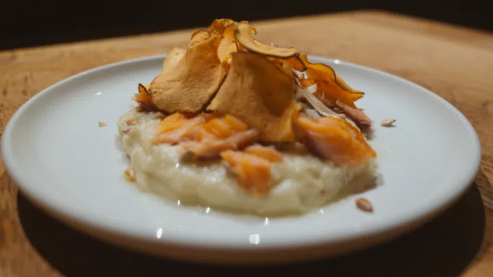 Rezept für Topinambur-Dreierlei mit Forelle und Sonnenblumenkernen