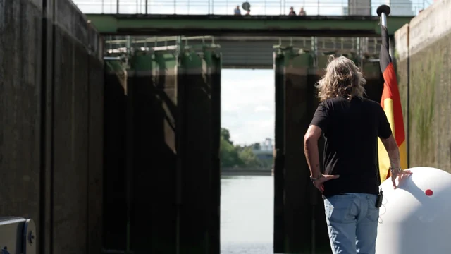 Leisenberg ist Hafenlotse. Seine Aufgabe ist es, die Schiffe mit ihren Containern sicher durch das Rheinknie zu manövrieren. Das ist Vorschrift. Rheinschiffe sind oft über 100 Meter lang. Durch die enorme Länge hat so ein Schiff bei der Fahrt tote Winkel. Die Mittlere Rheinbrücke aus dem 13. Jahrhundert ist dabei eine besondere Challenge.