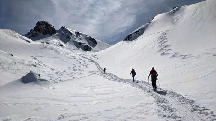 Bild 7 von 8. Gemütlich und Lawinensicher. Steile Hänge können weitläufig umgangen werden. Bildquelle: SRF/ Marcel Hähni.