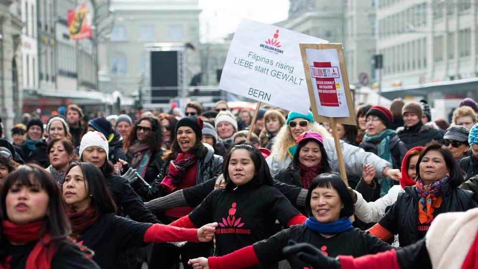 Hinter dem Flashmob steckt die Organisation «One Billion Rising»: «Billion» (deutsch Milliarde) bezieht sich auf die Zahl, dass ein Drittel aller Frauen und Mädchen weltweit in ihrem Leben Opfer von Vergewaltigungen oder Misshandlungen werden.