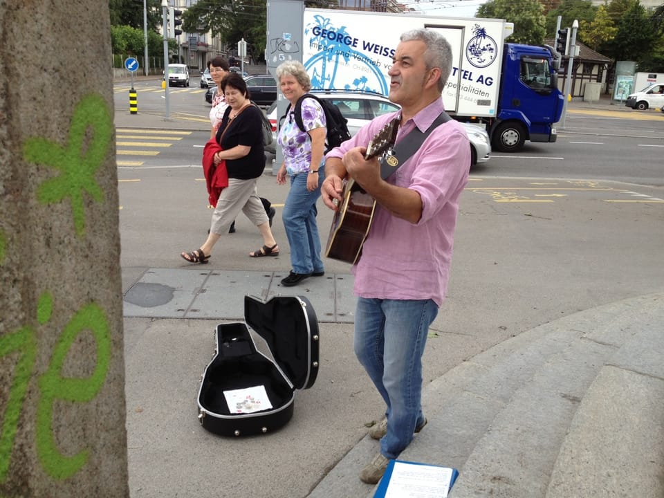 Wir machen die Probe aufs Exempel und schicken Radio SRF 1-Produzent Fredy Gasser los. Er macht zwar in seiner Freizeit Musik aber als Strassenmusiker war er noch nie unterwegs. Für knappe zwei Stunden stellte er sich auf den Bürkliplatz in Zürich und griff dort in die Gitarrensaiten. In der ersten halben Stunde wurde er auf die Probe gestellt. Das Publikum liess erstmal auf sich warten.