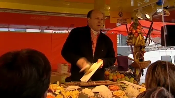 Dann macht er sich bereit für die nächste Vorstellung an der Olma. Während der ganzen Messdauer in der Ostschweiz warten 70 bis 80 Kilo Gemüse auf Daniel Meier und seinenGenerationenhobel.