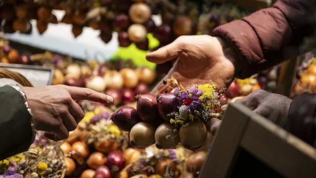 Bild 6 von 8. Hinter den schön hergerichteten Zwiebelzöpfen steckt monatelange Arbeit. Bildquelle: KEYSTONE/ALESSANDRO DELLA VALLE.