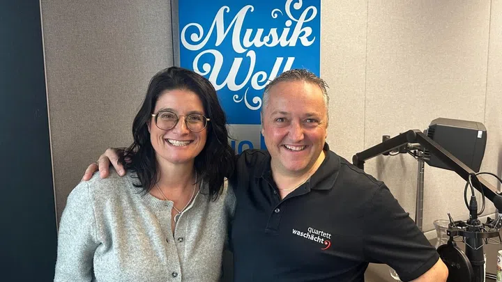 Bild 6 von 14. Seine Partnerin Sandra hält dem gefragten Volksmusiker den Rücken frei. Bildquelle: SRF Screen.