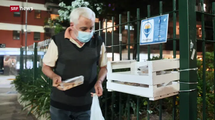 Durch die Corona-Krise können sich Millionen von argentinische Bürgern nicht mehr richtig ernähren. Da kam die Idee auf, jeder der kann, kocht eine Portionen mehr. Zuerst hängten sie das Essen in Tüten an einen Baum, inzwischen stehen an vielen Orten weiss bemalte Kisten, sogenannte «Punto Plato».