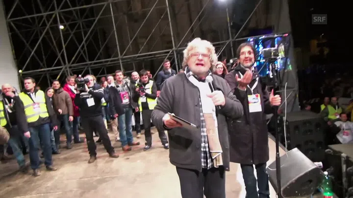 Mit dieser Show füllt Beppe Grillo damals auch Hallen in der Deutschschweiz und das italienischsprachige Fernsehen der Schweiz zeichnet in Bellinzona eigens eine Sendung auf. Diese wird aber vom staatlichen Fernsehen RAI nie ausgestrahlt. Denn längst ist der Komiker in vielen Machtzirkeln eine «persona non grata». Seine Attacken gehen der italienischen Nomenklatur einfach zu weit.