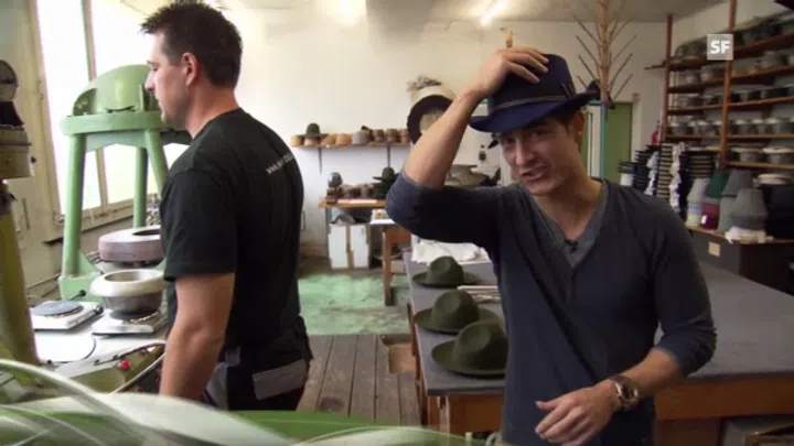 «Einstein»-Moderator Tobias Müller zu Besuch in einer der letzten Filzhutfabrik der Schweiz. Hüte sorgten einst für Furore – und das nicht nur in der Modebranche. Angeblich wurde der «Döschwo» so angepasst, dass Fahrer mit Hut gut darin Platz hatten.