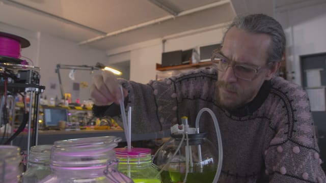 Im Hackuarium bei Lausanne gibt es alles, was man als Biohacker braucht: Petrischalen, Reagenzgläser, Pipetten, Messzylinder, Trichter. Etwa 50 Biohacker arbeiten hier in ihrer Freizeit regelmässig an verschiedenen Projekten. Einige forschen zum Spass, bringen Pflanzen zum leuchten, machen Kunstwerke mit bunten Bakterien.