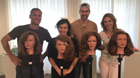 Vier Prominente messen sich in der Coiffeurkunst: Manuel Burkart, Jennifer Ann Gerber, Renzo Blumenthal und Anet Corti.