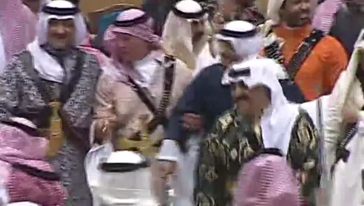 Prinz Charles eröffnete zusammen mit Mitgliedern der saudi-arabischen Königsfamilie ein Folklorefestival bei Riad. Bei dieser Gelegenheit liess er es sich nicht nehmen, bei einem traditionellen Schwert-Tanz eifrig mitzumachen.