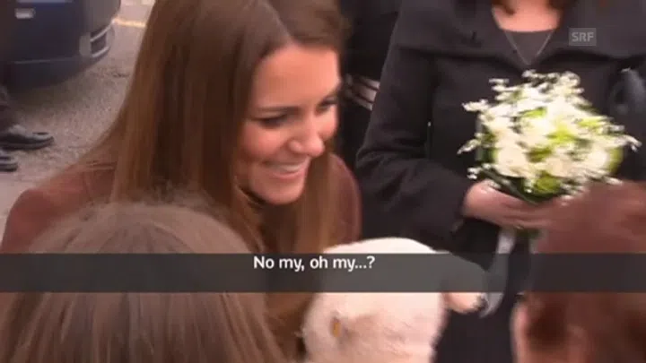 Bei einem offiziellen Besuch im Norden Englands bekam Catherine einen weissen Teddybären geschenkt – und sagte gemäss der dabeistehenden Sandra Cook: «Danke, ich nehme den für meine T...» Daraufhin soll sich Catherine selbst unterbrochen und schlicht ergänzt haben: «... für mein Baby.»