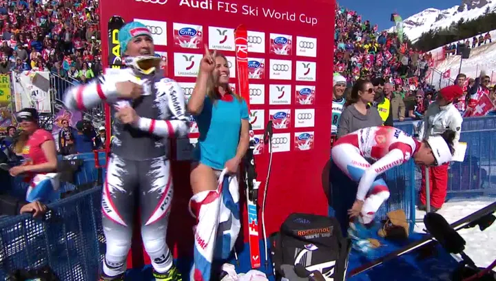 Das letzte Damenrennen der Skisaison 2013/14 ist Geschichte. Bald stehen für die meisten Rennfahrerinnen die wohlverdienten Ferien auf dem Programm. Deshalb ist die Stimmung neben der Piste so ausgelassen wie noch nie in dieser Saison.